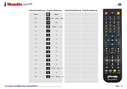 Ein Dokument ist enthalten, um die Verwendung der neuen Fernbedienung zu erleichtern, indem es die Tastenbelegung zeigt.