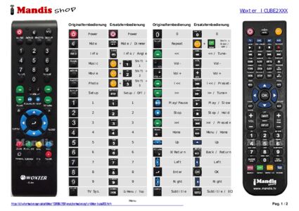 Ein Dokument ist enthalten, um die Verwendung der neuen Fernbedienung zu erleichtern, indem es die Tastenbelegung zeigt.