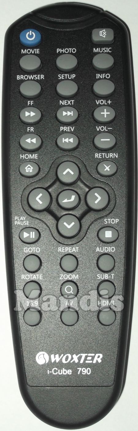Fernbedienung Original ICube790 zur Steuerung der Multimedia Festplatten der Marke Woxter. Es handelt sich um eine Originalfernbedienung.