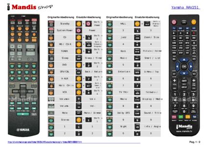 Ein Dokument ist enthalten, um die Verwendung der neuen Fernbedienung zu erleichtern, indem es die Tastenbelegung zeigt.