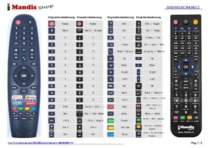 Ein Dokument ist enthalten, um die Verwendung der neuen Fernbedienung zu erleichtern, indem es die Tastenbelegung zeigt.