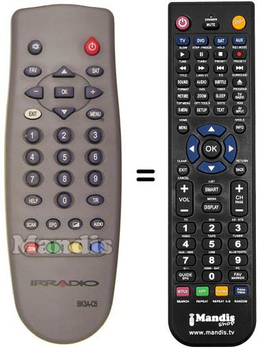 Fernbedienung, die das Original und die Gesamtheit seiner Funktionen, vollständig ersetzt.