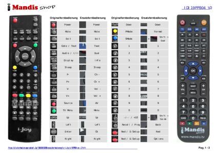 Ein Dokument ist enthalten, um die Verwendung der neuen Fernbedienung zu erleichtern, indem es die Tastenbelegung zeigt.