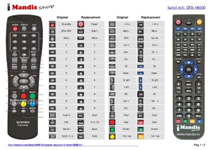 Below, we will show you the correspondence between each button on the original remote control and the button that performs the same function on the replacement remote control. In some cases, you may need to press the SHIFT key before pressing another button to perform certain actions. These additional functions are often not widely used and are included to facilitate understanding of the replacement remote control, or because the original remote control has more buttons than its equivalent.