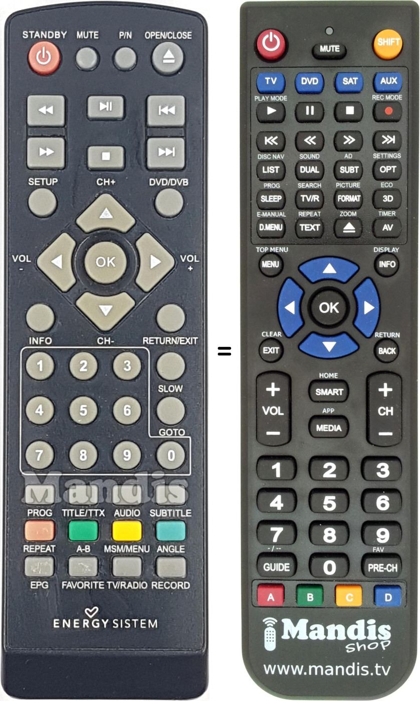 Below, we will show you the correspondence between each button on the original remote control and the button that performs the same function on the replacement remote control. In some cases, you may need to press the SHIFT key before pressing another button to perform certain actions. These additional functions are often not widely used and are included to facilitate understanding of the replacement remote control, or because the original remote control has more buttons than its equivalent.