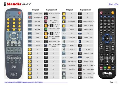 1. Look at the images of the two remote controls: the original (left) and the replacement (right).