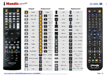 • SHIFT key: Some buttons on the replacement remote control require pressing the SHIFT key before pressing another button to perform certain functions. If a button on the original remote control requires the SHIFT key, it will be indicated in the image.