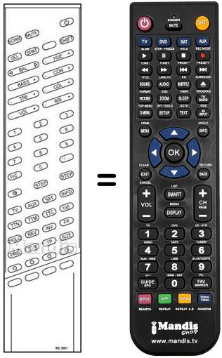 Remote control to replace the original and all its functions.