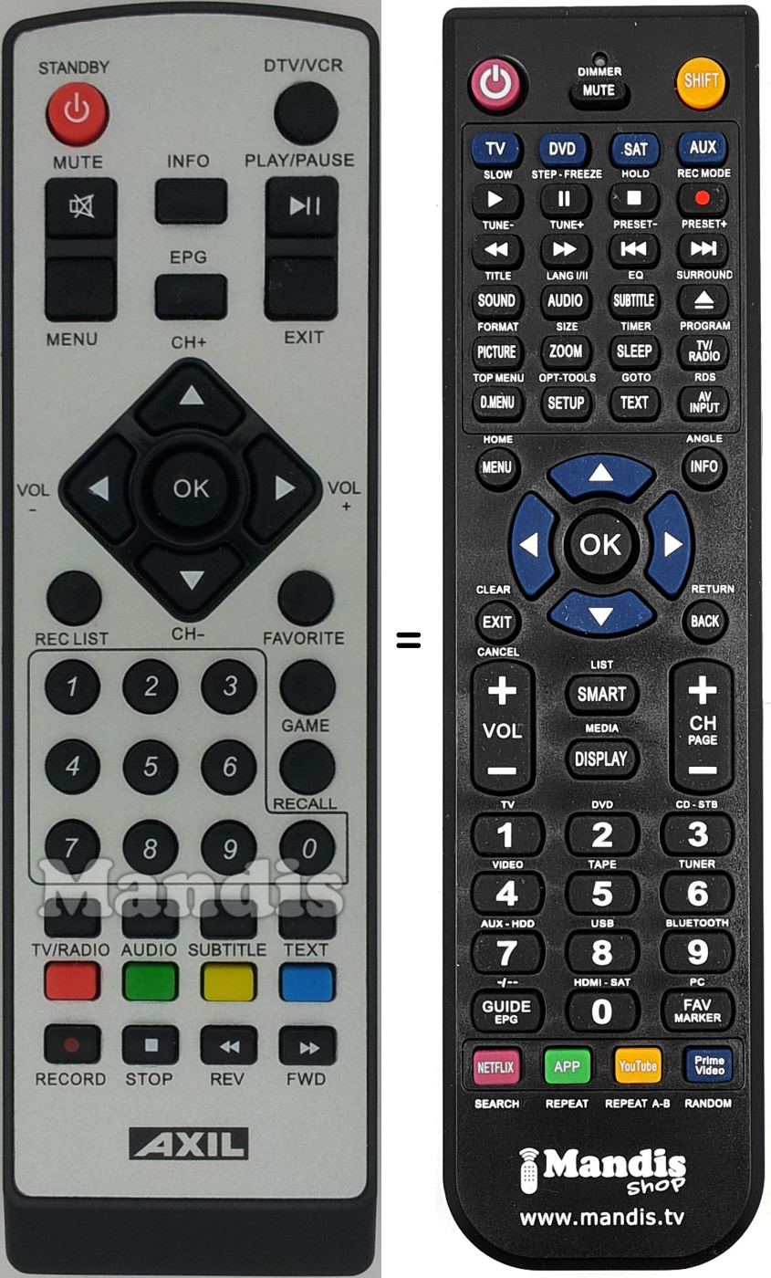 Remote control to replace the original RT 196 (RT0196) and all its functions.
