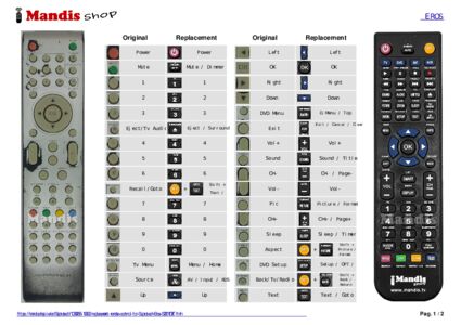 Below, we will show you the correspondence between each button on the original remote control and the button that performs the same function on the replacement remote control. In some cases, you may need to press the SHIFT key before pressing another button to perform certain actions. These additional functions are often not widely used and are included to facilitate understanding of the replacement remote control, or because the original remote control has more buttons than its equivalent.