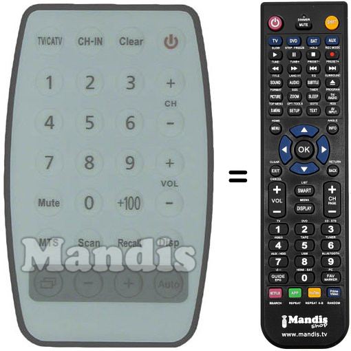 Remote control to replace the original and all its functions.