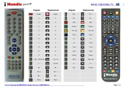 Below, we will show you the correspondence between each button on the original remote control and the button that performs the same function on the replacement remote control. In some cases, you may need to press the SHIFT key before pressing another button to perform certain actions. These additional functions are often not widely used and are included to facilitate understanding of the replacement remote control, or because the original remote control has more buttons than its equivalent.