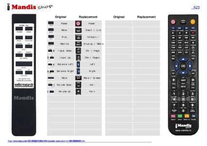 Below, we will show you the correspondence between each button on the original remote control and the button that performs the same function on the replacement remote control. In some cases, you may need to press the SHIFT key before pressing another button to perform certain actions. These additional functions are often not widely used and are included to facilitate understanding of the replacement remote control, or because the original remote control has more buttons than its equivalent.