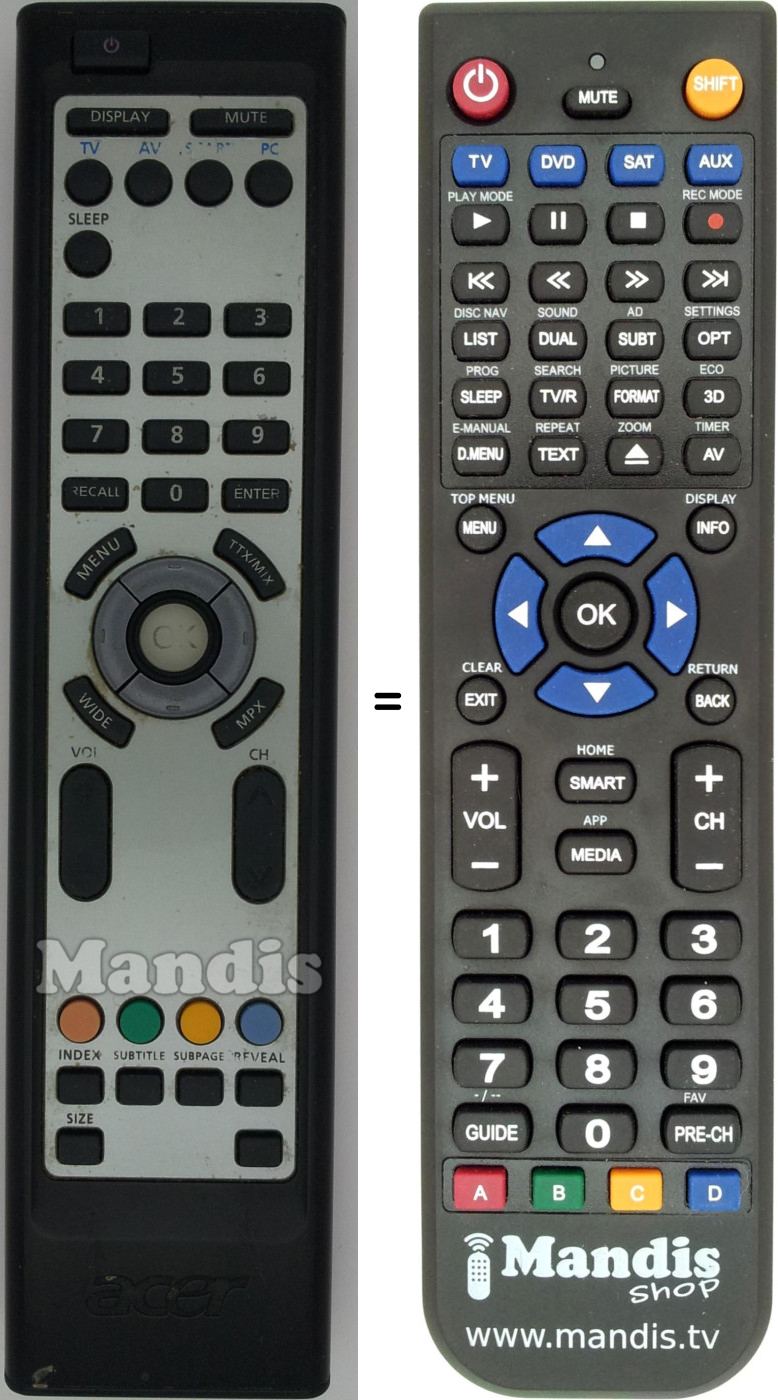 This remote control performs all the functions of the original remote control: