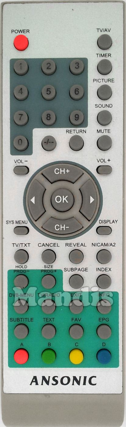 original remote control ANS003 used for televisions for the brand Ansonic. This is an original remote control.