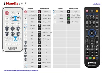 This remote control fully replaces your RC6020 and offers all the functions of the original.