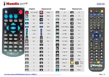 Below, we will show you the correspondence between each button on the original remote control and the button that performs the same function on the replacement remote control. In some cases, you may need to press the SHIFT key before pressing another button to perform certain actions. These additional functions are often not widely used and are included to facilitate understanding of the replacement remote control, or because the original remote control has more buttons than its equivalent.