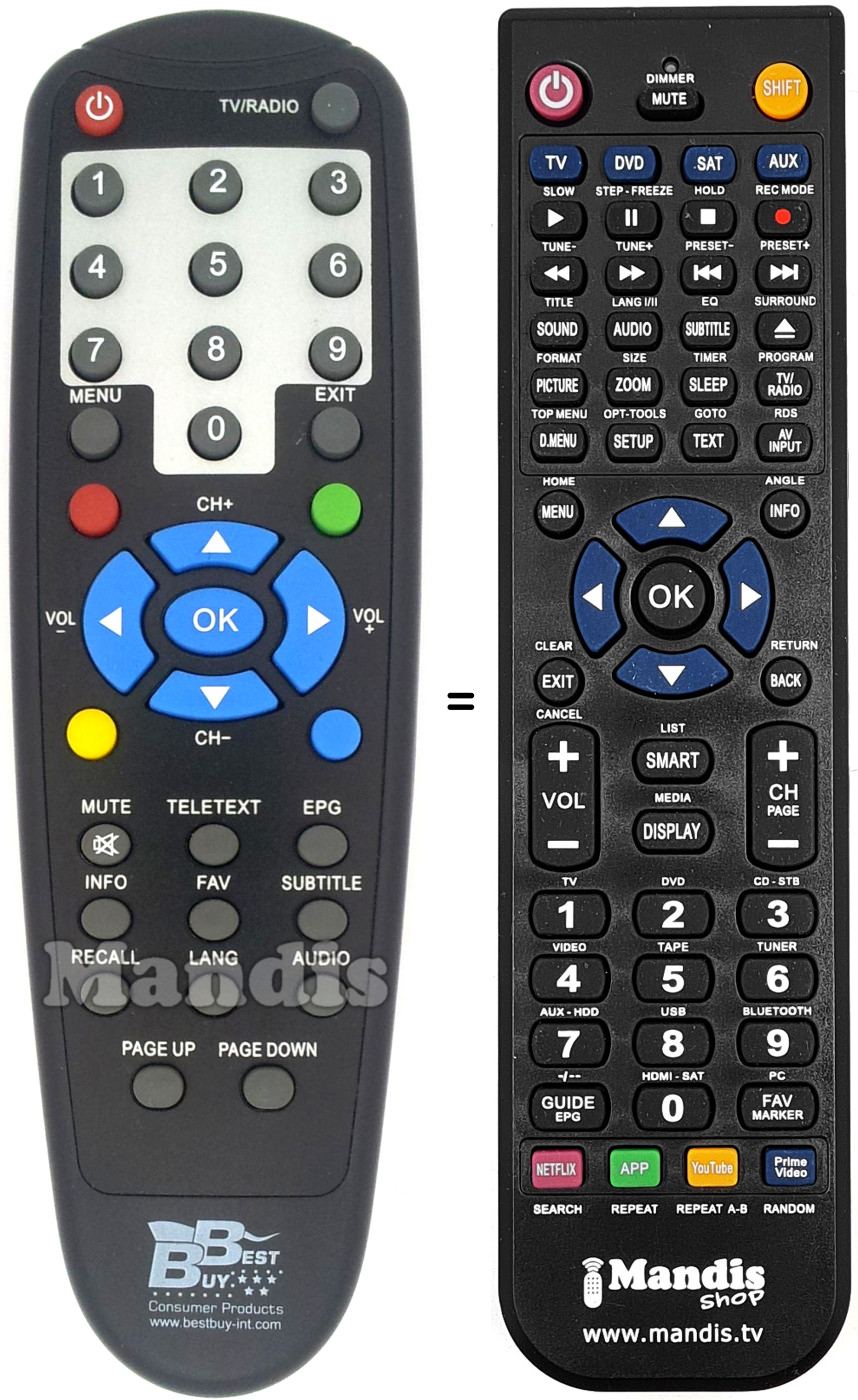 Remote control to replace the original and all its functions.