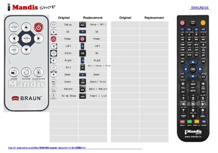 This remote control fully replaces your BRAUN004 and offers all the functions of the original.
