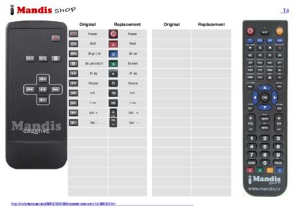 Below, we will show you the correspondence between each button on the original remote control and the button that performs the same function on the replacement remote control. In some cases, you may need to press the SHIFT key before pressing another button to perform certain actions. These additional functions are often not widely used and are included to facilitate understanding of the replacement remote control, or because the original remote control has more buttons than its equivalent.