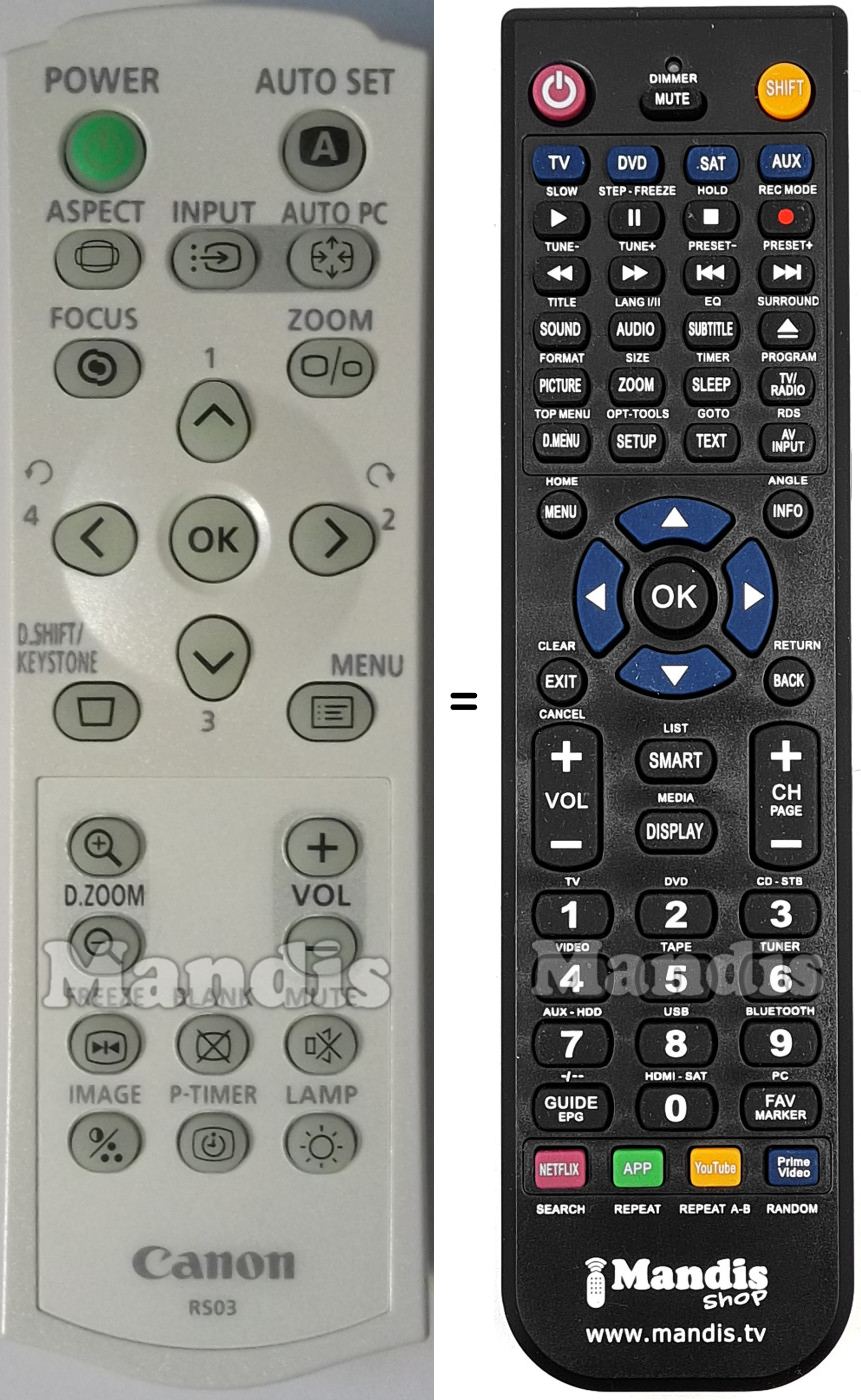 This remote control fully replaces your RS03 (YH7-2245-000) and offers all the functions of the original.