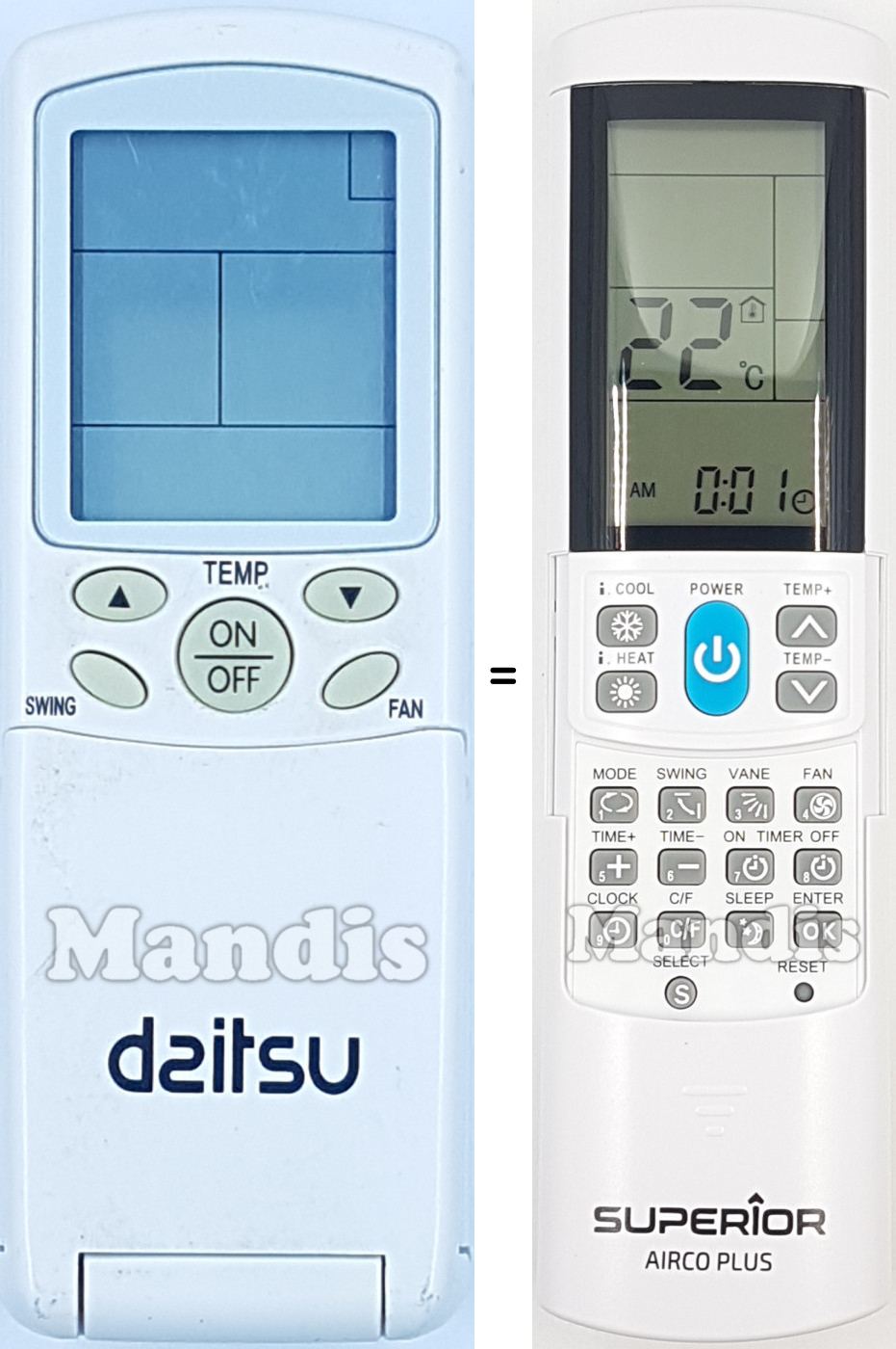 My LG air-conditioner's remote died and need replacement. AircoPlus did the job. I should point out that the code match did not correspond according to manufacturer's table. Let the auto-search code set up do the work. Also, excellent service by Mandis Remotes with a well-protected package.