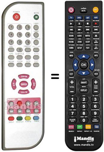 Remote control to replace the original and all its functions.