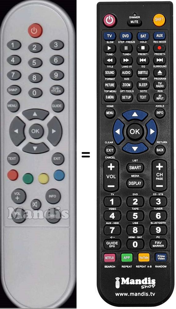 Remote control to replace the original and all its functions. It is not a universal remote but a substitute for the original. You will receive the remote ready to use: you only need to install the batteries. It is not necessary to program it. We offer you our full guarantee that the remote will perform all the functions of the original.
