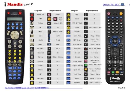 Below, we will show you the correspondence between each button on the original remote control and the button that performs the same function on the replacement remote control. In some cases, you may need to press the SHIFT key before pressing another button to perform certain actions. These additional functions are often not widely used and are included to facilitate understanding of the replacement remote control, or because the original remote control has more buttons than its equivalent.