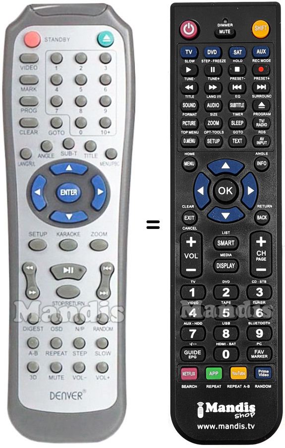 This remote control fully replaces your DVD706K and offers all the functions of the original.