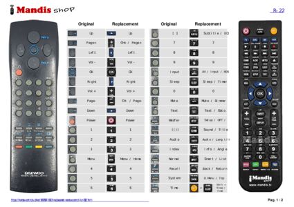 A document is included to help you use the new remote control easily, showing the button correspondence.