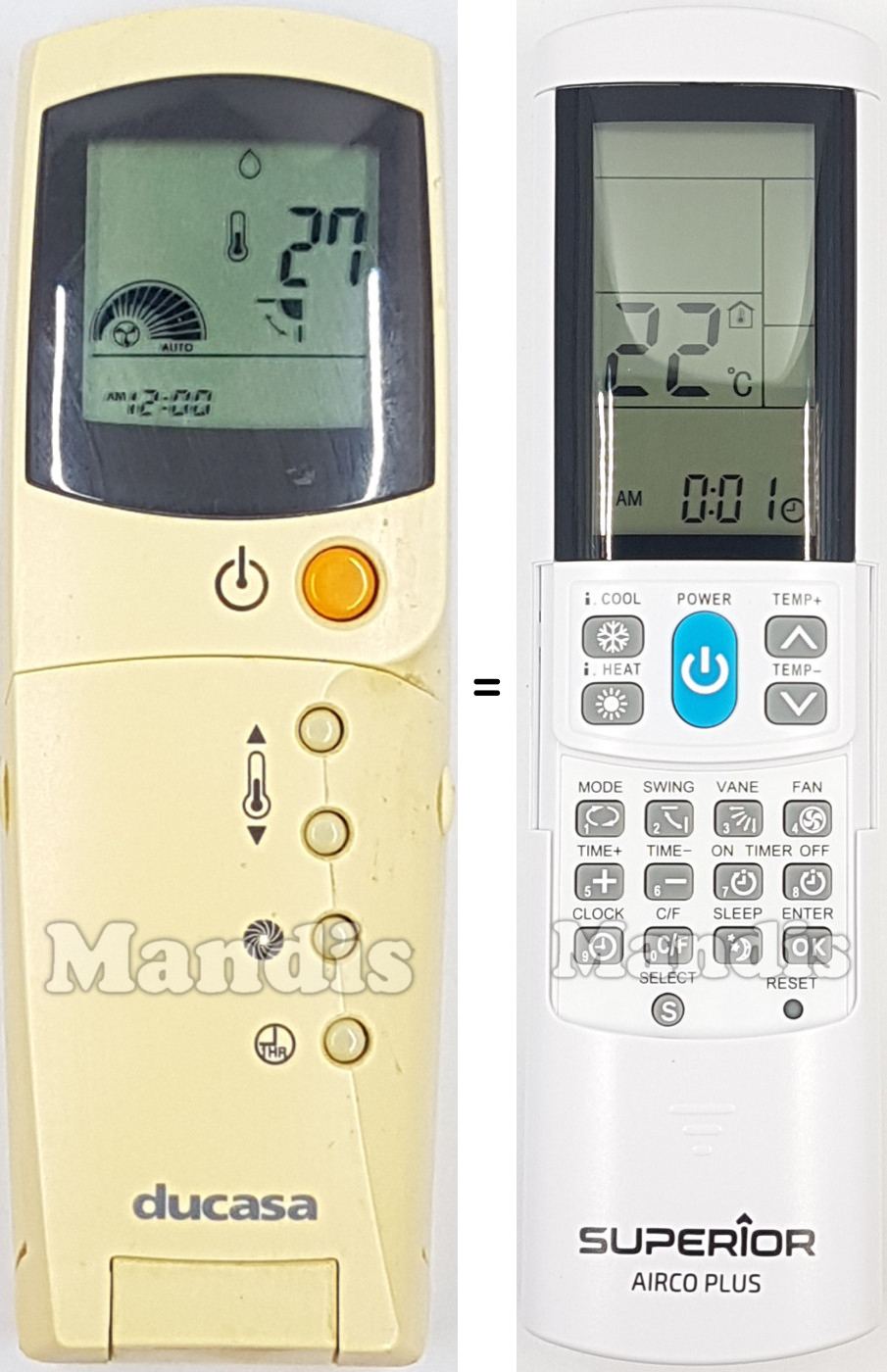 My LG air-conditioner's remote died and need replacement. AircoPlus did the job. I should point out that the code match did not correspond according to manufacturer's table. Let the auto-search code set up do the work. Also, excellent service by Mandis Remotes with a well-protected package.
