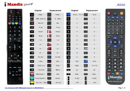 Below, we will show you the correspondence between each button on the original remote control and the button that performs the same function on the replacement remote control. In some cases, you may need to press the SHIFT key before pressing another button to perform certain actions. These additional functions are often not widely used and are included to facilitate understanding of the replacement remote control, or because the original remote control has more buttons than its equivalent.