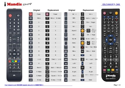 A document is included to help you use the new remote control easily, showing the button correspondence.