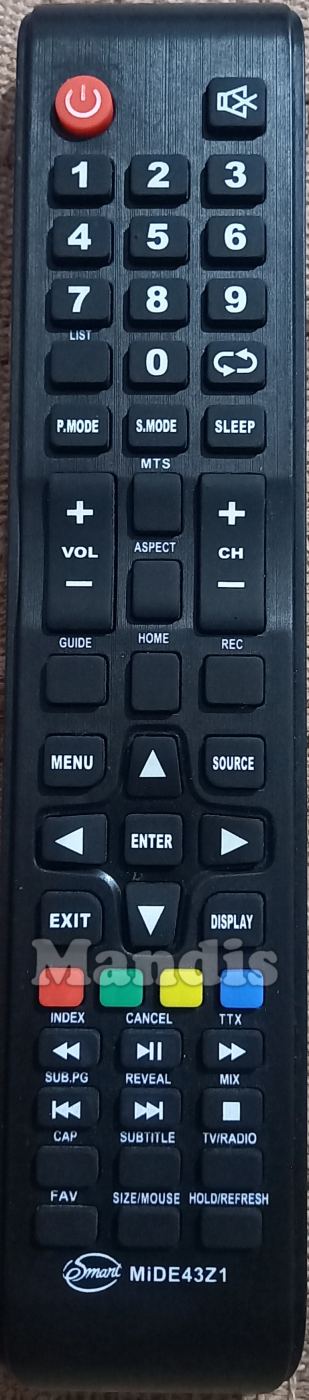 original remote control MiDE43Z1 used for televisions for the brand ESmart. This is an original remote control.