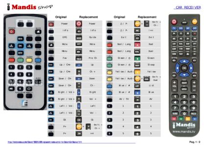 Below, we will show you the correspondence between each button on the original remote control and the button that performs the same function on the replacement remote control. In some cases, you may need to press the SHIFT key before pressing another button to perform certain actions. These additional functions are often not widely used and are included to facilitate understanding of the replacement remote control, or because the original remote control has more buttons than its equivalent.