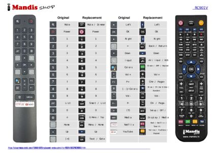 This remote control fully replaces your RC901V (06BTZNYYLRCHF901) and offers all the functions of the original.