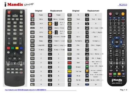 A document is included to help you use the new remote control easily, showing the button correspondence.