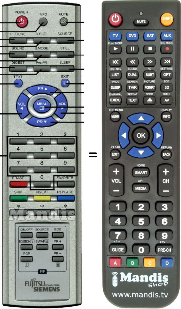 This remote control fully replaces your REMCON751 and offers all the functions of the original.