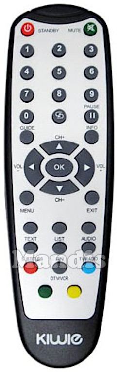 Standby, Mute, 1, 2, 3, 4, 5, 6, 7, 8, 9, 0, Recall, Pause, Guide, Info, Up / CH+, Down / CH-, Left / Vol-, Right / Vol+, OK, Menu, Exit, Text, List, Audio, Subtitle, P / N, TV / Radio, DTV / VCR, Red, Green, Yellow, Blue