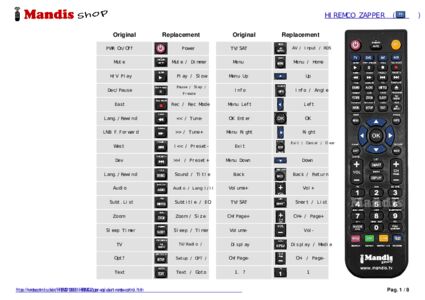 A document is included to help you use the new remote control easily, showing the button correspondence.