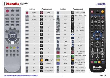 This remote control fully replaces your T3010MHP and offers all the functions of the original.