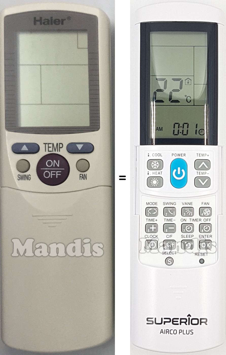 My LG air-conditioner's remote died and need replacement. AircoPlus did the job. I should point out that the code match did not correspond according to manufacturer's table. Let the auto-search code set up do the work. Also, excellent service by Mandis Remotes with a well-protected package.