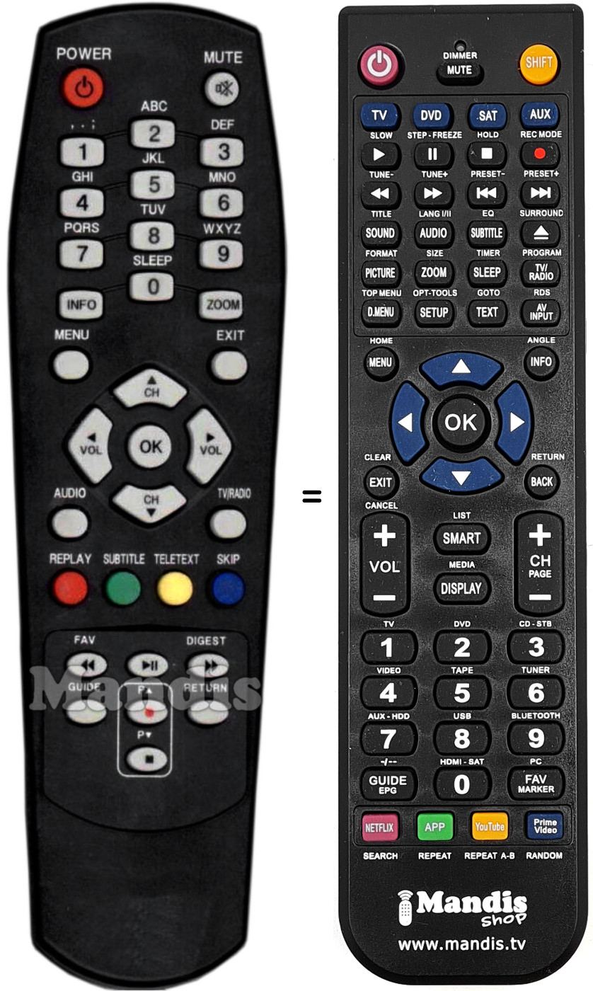 Remote control to replace the original and all its functions.