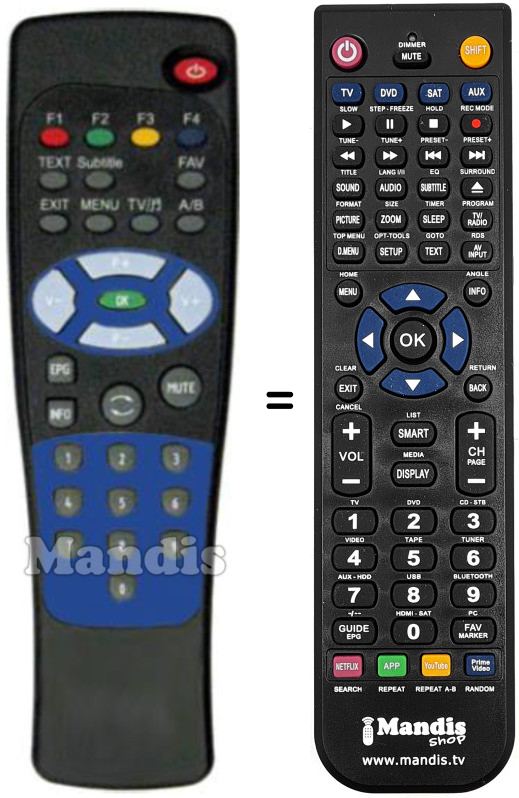 Remote control to replace the original and all its functions.