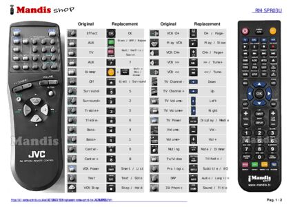 Below, we will show you the correspondence between each button on the original remote control and the button that performs the same function on the replacement remote control. In some cases, you may need to press the SHIFT key before pressing another button to perform certain actions. These additional functions are often not widely used and are included to facilitate understanding of the replacement remote control, or because the original remote control has more buttons than its equivalent.