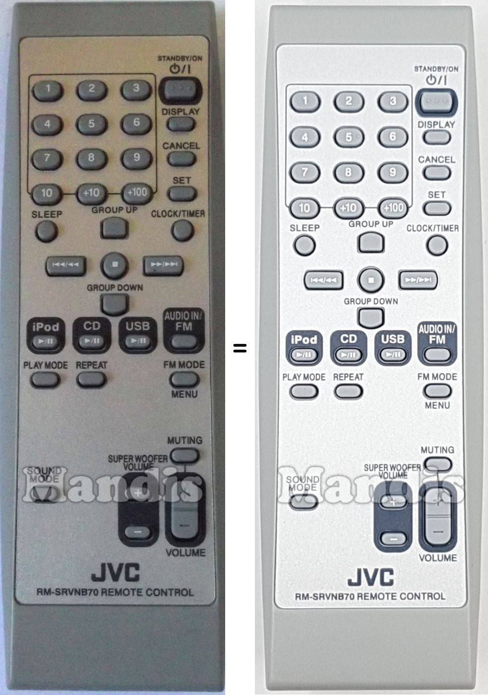 Replacement remote controls that replace in all its functions the remote JVC RM-SRVNB70 (BI600NB7005S):