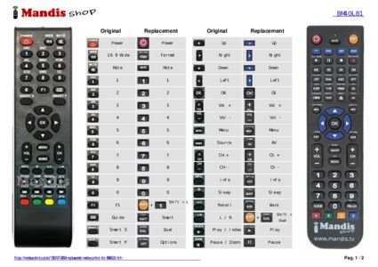 Below, we will show you the correspondence between each button on the original remote control and the button that performs the same function on the replacement remote control. In some cases, you may need to press the SHIFT key before pressing another button to perform certain actions. These additional functions are often not widely used and are included to facilitate understanding of the replacement remote control, or because the original remote control has more buttons than its equivalent.