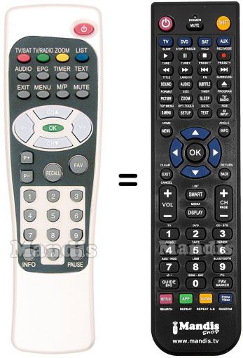 Below, we will show you the correspondence between each button on the original remote control and the button that performs the same function on the replacement remote control. In some cases, you may need to press the SHIFT key before pressing another button to perform certain actions. These additional functions are often not widely used and are included to facilitate understanding of the replacement remote control, or because the original remote control has more buttons than its equivalent.
