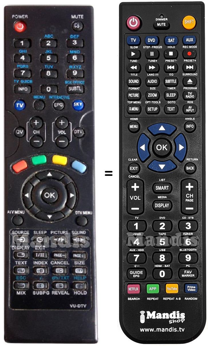 This remote control fully replaces your VU-DTV and offers all the functions of the original.